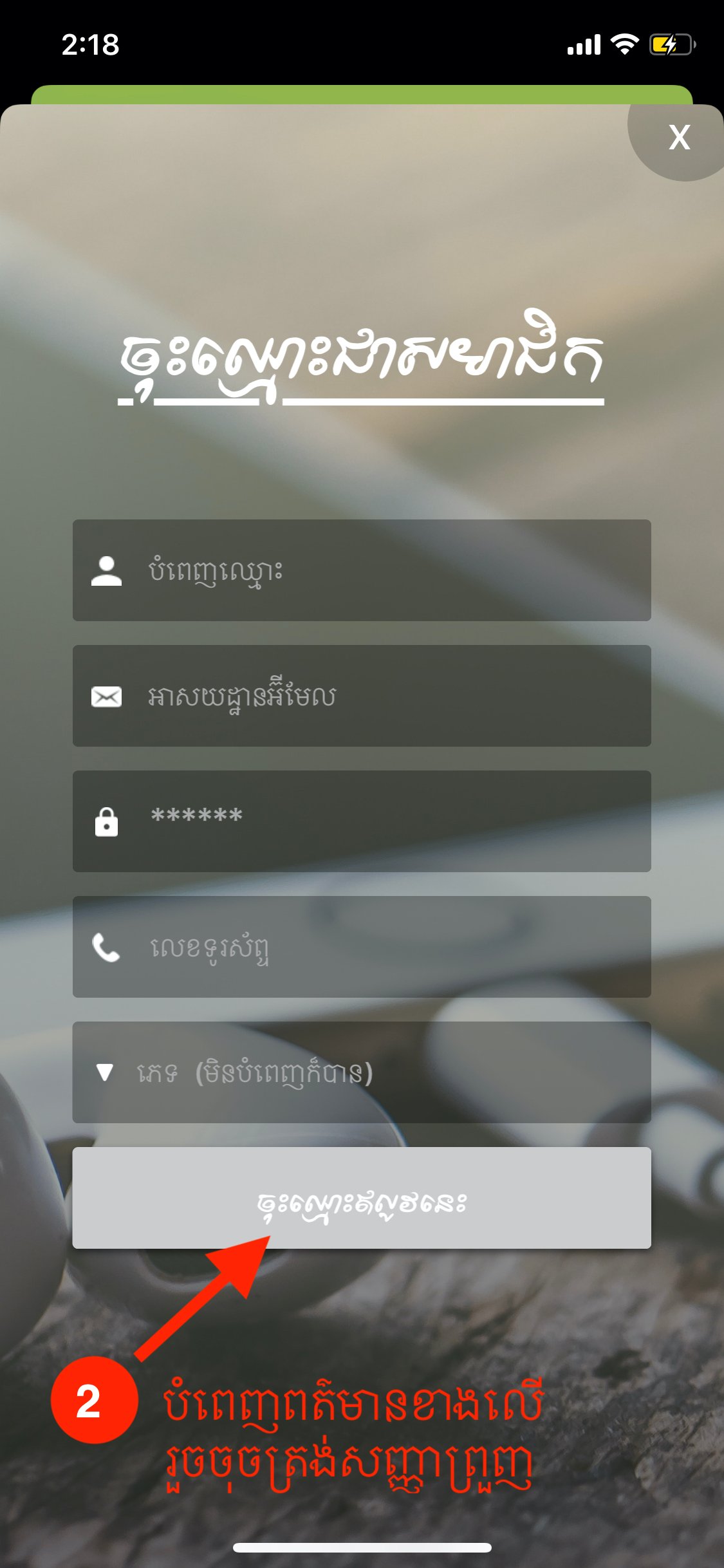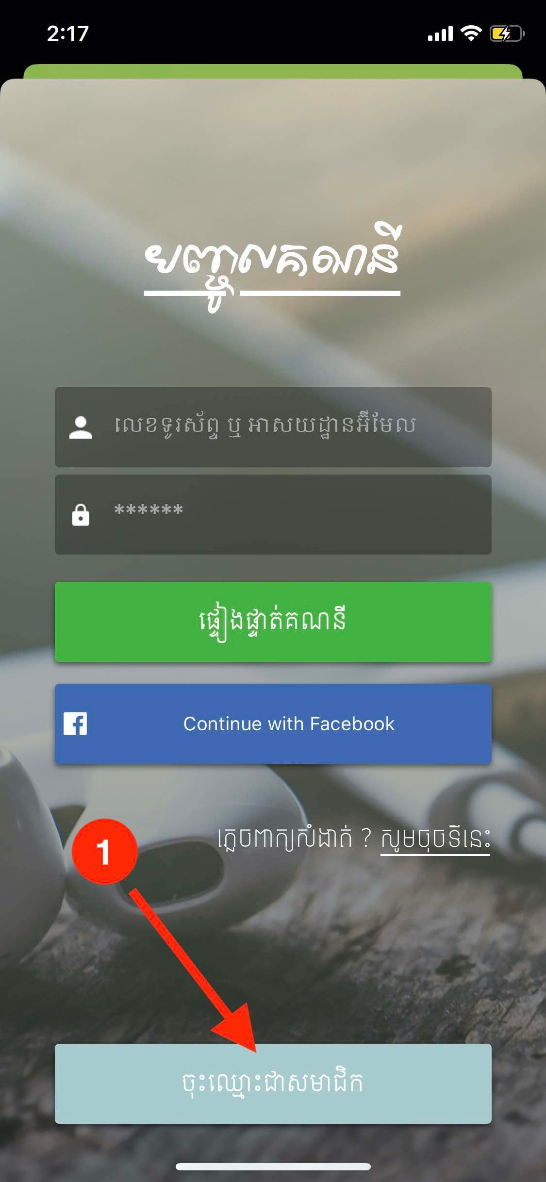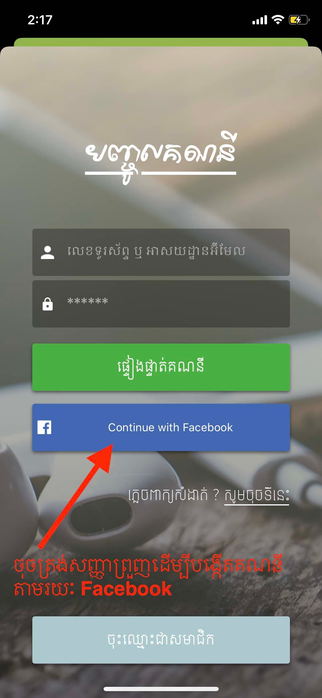 Or you just login with your Facebook account then the app will automatically create Chreang account for you with your Facebook basic information.